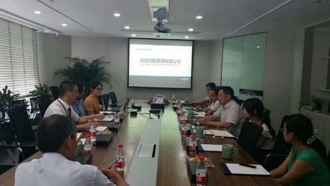 7月10日下午,中共湖州市委统战部副部长任玉林、湖州市工商业联合会副主席赵晖、湖州市总商会处长曹以跃、安吉商会执行会长张德宝等领导莅临德信集团。董事长胡一平热情接待了他们。