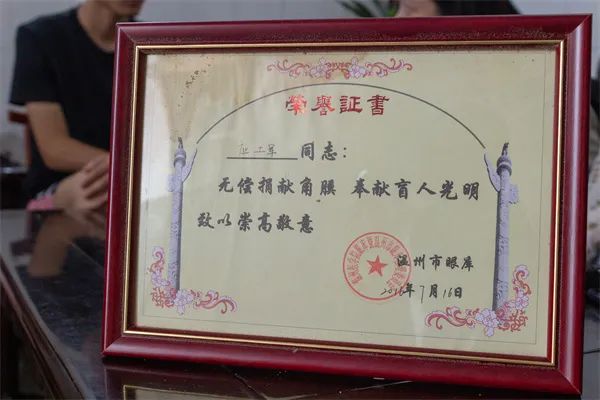 后来姑姑们实在舍不得至亲离开,决定只捐献兄弟的眼角膜。超迅陪伴着爸爸签下捐献同意书,爸爸也是缙云第一位捐赠眼角膜的人。这本证书,超迅一直好好地保留着,看见它,就好像看见爸爸一样。