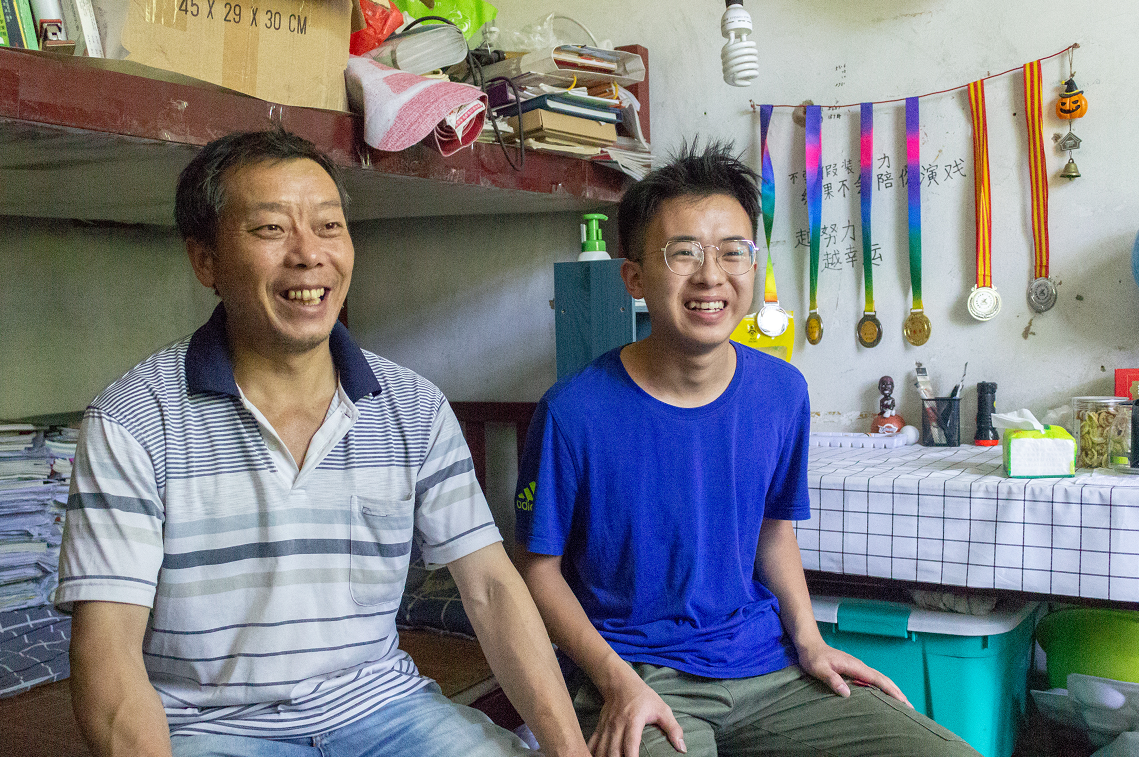 爸爸很为儿子的成长骄傲。14年前,他带着儿子从小村到县城打工,妻子一走就没有再回到这个家来。这个男人又当爹又当妈,在焊材厂里包装焊丝,上着“两班倒”的班,还学着给儿子做饭。罗序浩说:“我爸爸烧鱼很好吃!”爸爸有点不好意思:“原先也不会做,熟能生巧,慢慢就练出来了。”序浩其实很心疼爸爸,学着给爸爸做过青椒炒肉:“我爸上班要两个白班接着两个夜班,前年干活的时候还被齿轮夹断右手的一截手指,真的很不容易。”