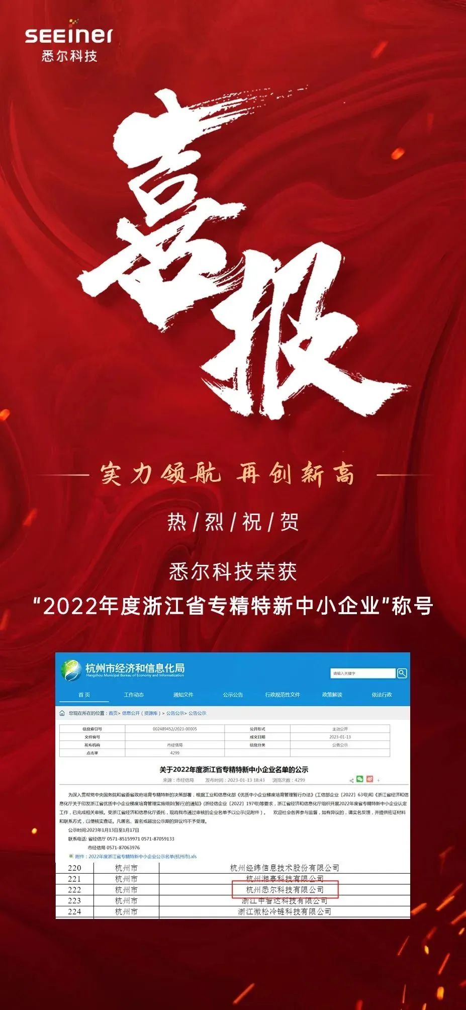 喜报!悉尔科技通过“2022年度浙江省专精特新中小企业”认定
