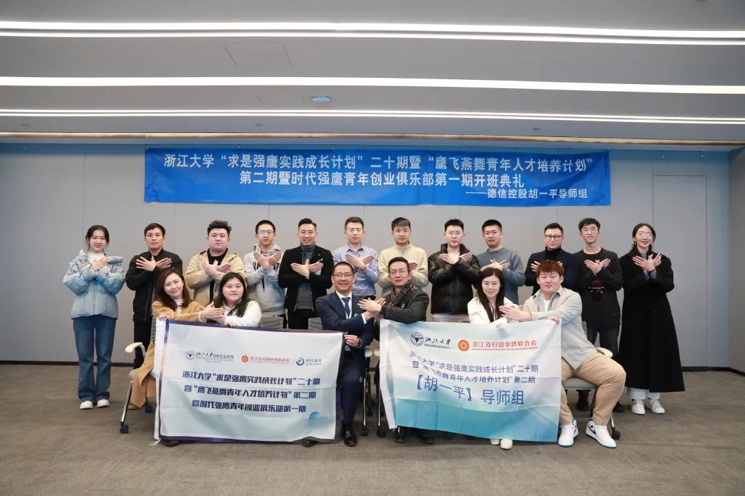 2月26日下午,浙江大学“求是强鹰实践成长计划”二十期暨 “鹰飞燕舞青年人才培养计划”第二期暨时代强鹰青年创业俱乐部第一期“德信控股集团胡一平导师组开班典礼”在德信集团十楼大讲堂顺利举行。德信控股集团董事长胡一平,彩虹人生思政育人平台创始人、强鹰创始人、浙江大学创新创业学院常务副院长阮俊华及胡一平导师组学员等出席会议,时代强鹰·杭州创业发展促进会人才发展中心副主任王梦洁主持会议。